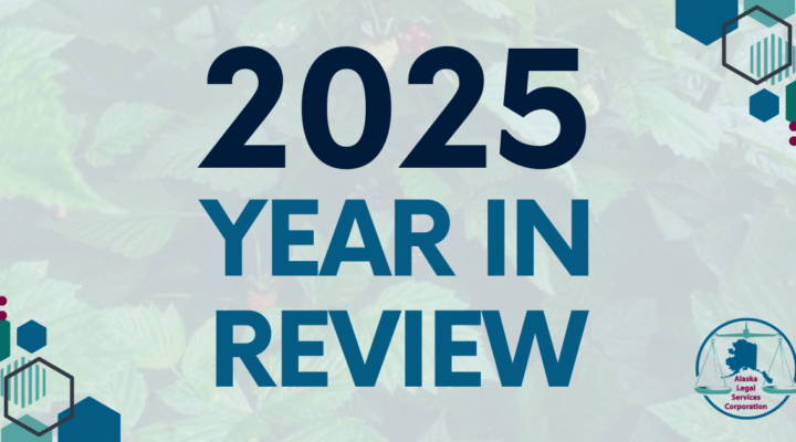 2024 Year in Review: Reflecting on ALSC’s Positive Impact Across Alaska As we reflect on the achievements of 2024, we are proud to highlight the impactful work that ALSC accomplished. This Year in Review report showcases the work of our dedicated staff and volunteers, serving clients in over 200 communities across Alaska and reaching countless others through outreach and …